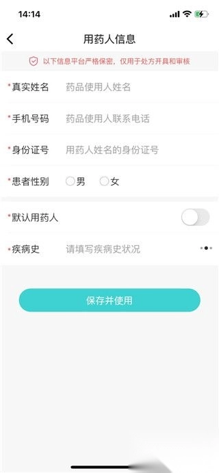 4、在这里输入真实信息后点击【保存并使用】即可。