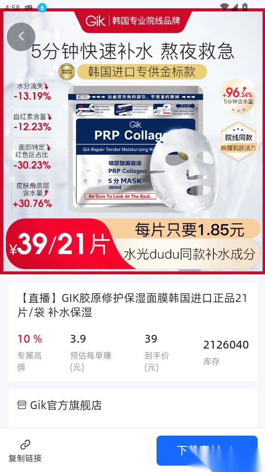 5. 进入商品详情页后,点击“素材”按钮,就能一键使用该商品的营销素材。