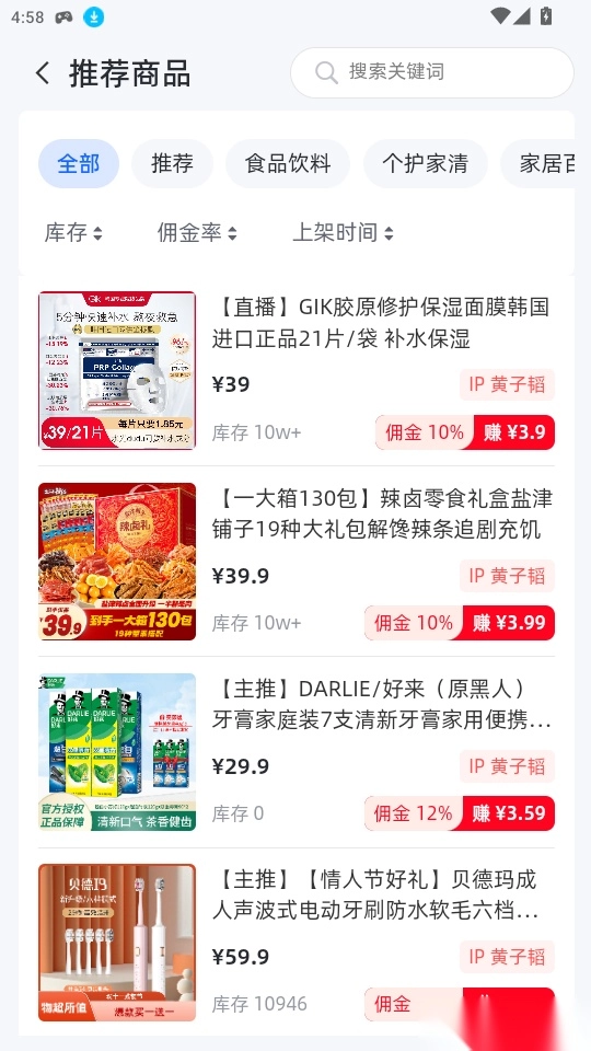 你可以依据商品的佣金比例、库存数量、上架时长等多方面综合条件,精准筛选出适合带货的心仪商品。