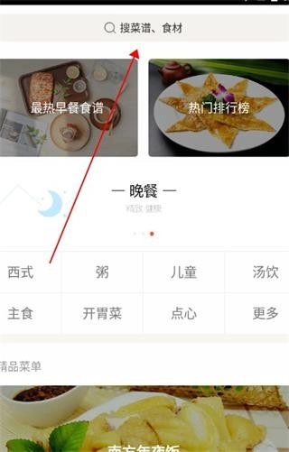 1、进入早餐食谱板块后,在软件首页上方的搜索栏里,就能开始查找想要的食谱了。