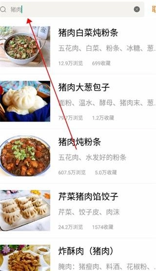 2、只需在搜索栏输入关键词,系统就会自动筛选并展示相关的料理食谱,帮助你快速找到目标。