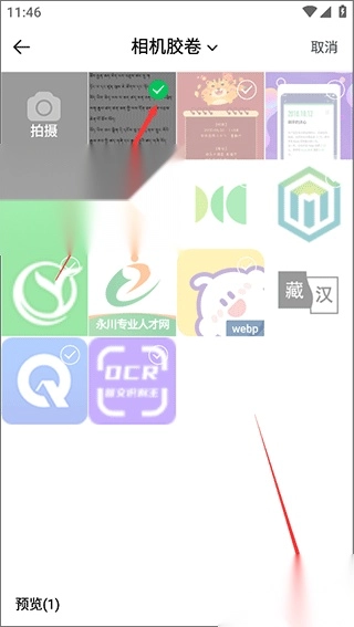 2、例如从相册中选取图片,找到你需要翻译的藏文或汉文图片。