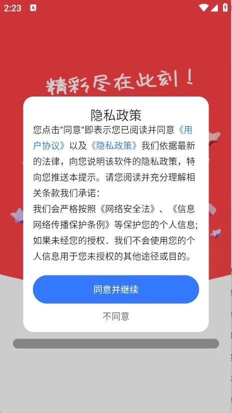 1、打开软件后,查看并同意隐私政策与用户协议。