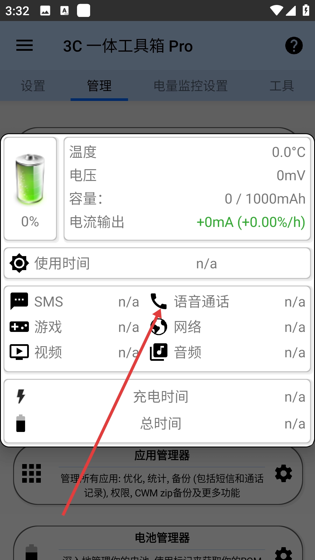 4、点击后会弹出电池信息弹窗,在该弹窗中可以查看电池的温度、电压、容量等详细信息。