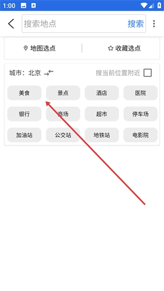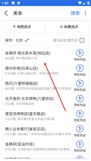 2、点击【金鼎轩·南北家乡菜(地坛店)】,进入该餐厅的地图页面。
