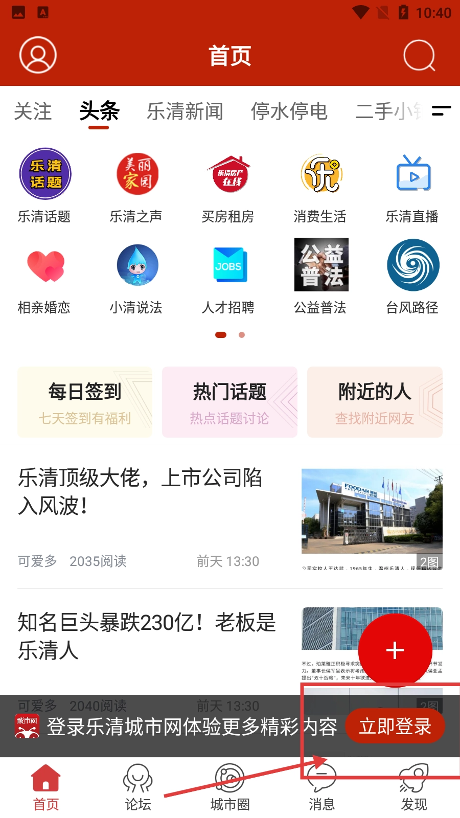 在主界面能够查看各类本地资讯以及功能入口,要是想登录体验更多内容,点击底部的【立即登录】按钮就行。