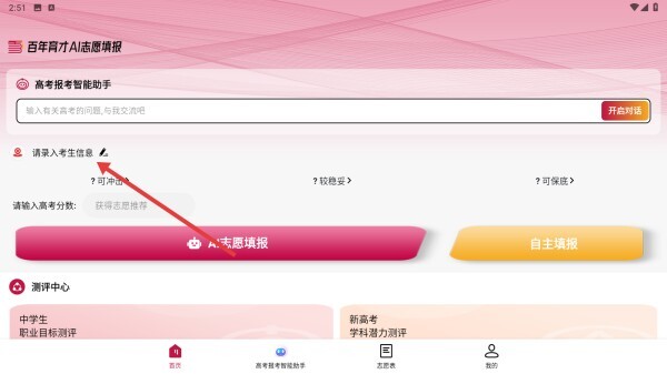 百年育才AI志愿填报是一款优质实用的志愿填报教学软件,能为广大用户提供专业的志愿填报指导,帮助用户深入了解各类名校资源及志愿填报相关知识,欢迎大家使用百年育才AI志愿填报。