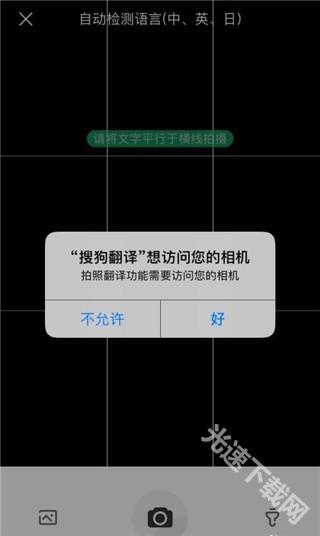 6、允许软件访问权限:说起第三个功能的话,是需要先让搜狗翻译允许相机权限的,因为需要用到拍照功能,在一开始打开软件的时候,数据访问的权限,通知的权限建议大家都去开启。