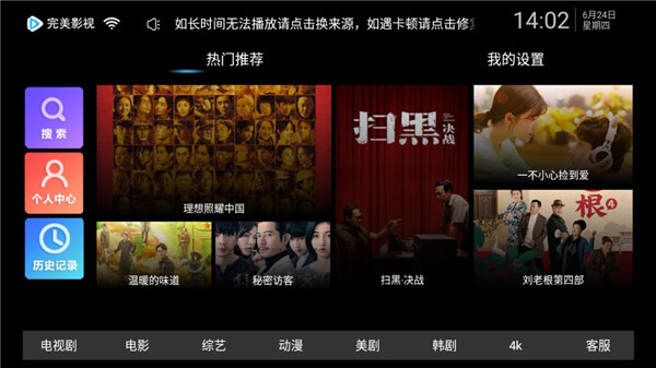 完美电视TV版构建了覆盖央视、卫视、地方台与特色频道的直播矩阵,其信号采集系统可对全国数千个频道状态进行实时监测。影视资源库整合了爱奇艺、腾讯视频等头部平台的内容,支持4K超高清画质呈现,回放功能能够回溯过去七天的节目内容。遥控器操作经过针对性优化,数字按键可实现频道的直接跳转,语音搜索支持片名与演员名的模糊匹配,多用户系统则能为家庭成员建立专属的观看偏好档案。