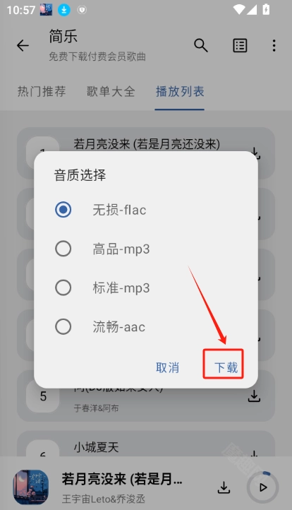 2. 在弹出的对话框里,挑选你想要的音质,选好之后点击确认。