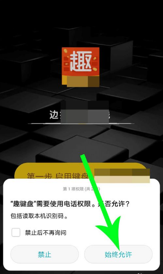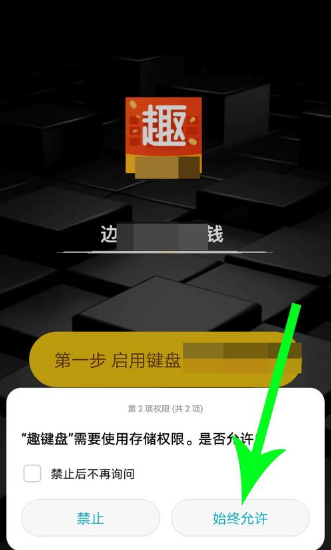 这时趣键盘会弹出两个底部窗口,点击“始终允许”即可关闭这些弹窗。
