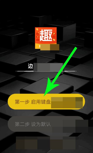打开趣键盘“设置”页面后点击“第一步 启用键盘”