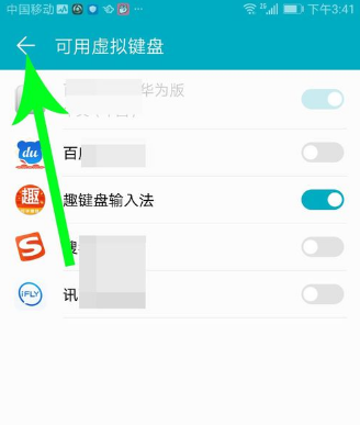 开启趣键盘输入法的锁定按钮后,点击界面左上角的“返回”图标,具体位置可参考下图