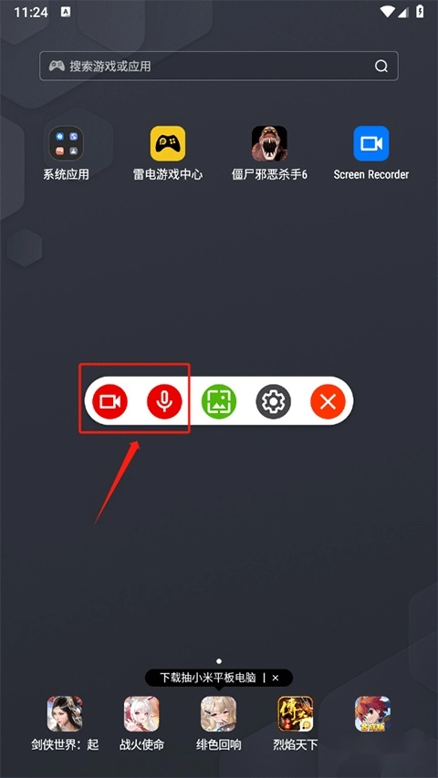 3、接下来会出现一个录制悬浮窗,录制内部音频时要打开麦克风功能,之后点击摄像头图标就能启动录制了