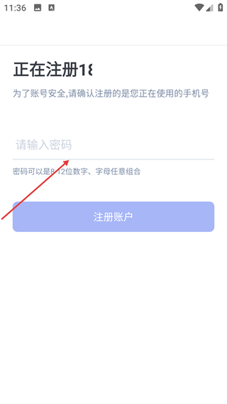 3、注册账户时请设置8-12位数字与字母组合的密码,确认所填手机号为当前正在使用的号码后,点击【注册账户】按钮即可完成账号创建。