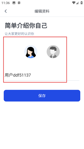 4、进入【编辑资料】页面后,挑选头像样式并设置昵称,操作完成后点击【保存】按钮,就能完成个人资料信息的更新。