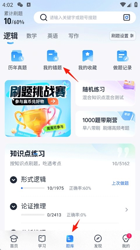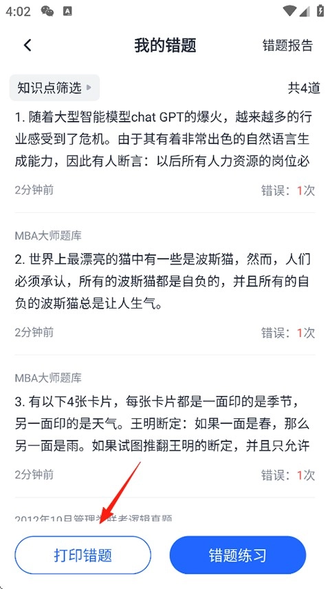 2、挑选错题的类型:套卷或者练习,接着再次点击右上角的编辑按钮;