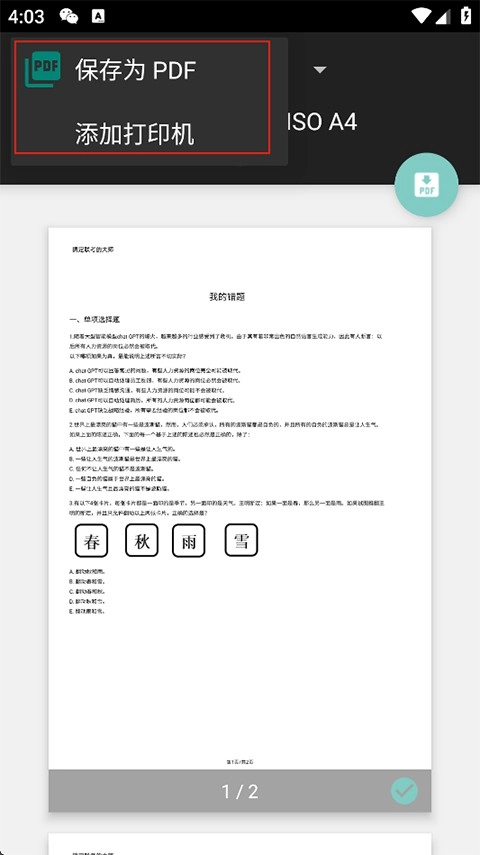 5、点击左上角,选择保存为PDF格式,或者添加打印机后直接打印。
