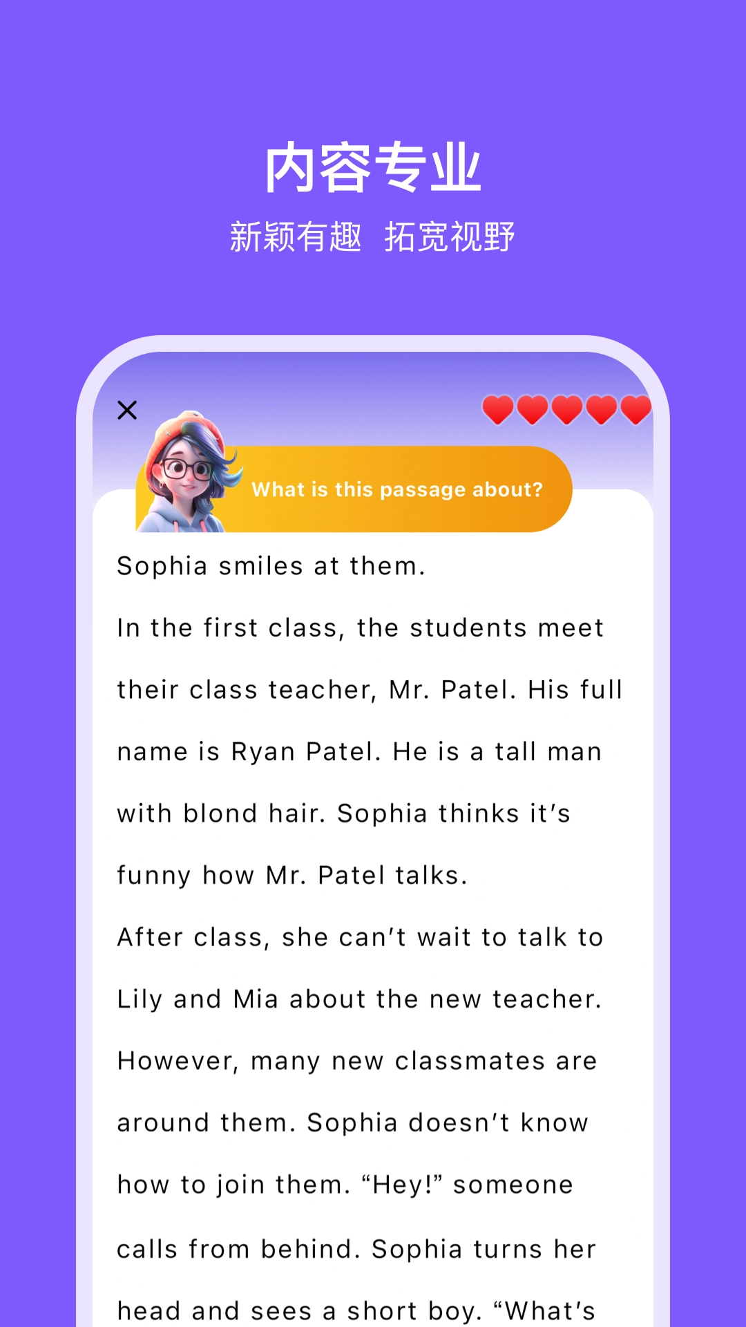 它可依据孩子的词汇积累情况,精准定制适配的阅读内容,为孩子生成个性化的词汇画像,确保语篇难度恰到好处,通篇生词占比控制在5%左右,孩子稍作努力就能轻松理解。