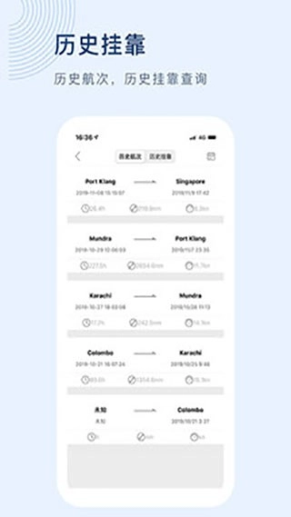 2、支持船舶历史航行轨迹的查询功能,用户可通过该功能查看船舶的航行路线、停靠港口等相关信息。