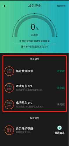 进入后可通过绑定微信账号、邀请好友等任务方式减免押金。