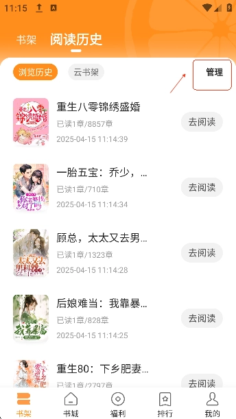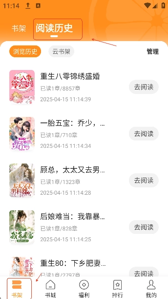 在本站安装青橙小说后,找到书架上方的“阅读历史”选项。