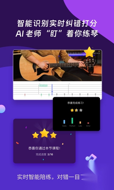 2、个性化课程定制:用户能够依据自身兴趣与能力水准,定制不同难度级别的课程。该应用还具备自动适配男生版或女生版的功能,助力用户更轻松地学习弹唱心仪的歌曲。