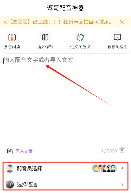 2、接着打开应用,在输入框中输入或者粘贴文本,之后选择配音员以及语速。