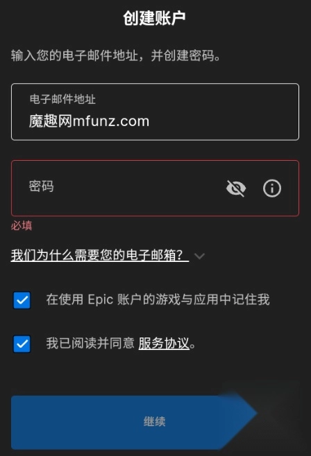 3.完成上述步骤后,点击“继续”按钮。系统会向你注册时填写的邮箱发送一封验证邮件,请你留意查收,并将邮件中的验证码准确输入,以此完成邮箱验证环节。