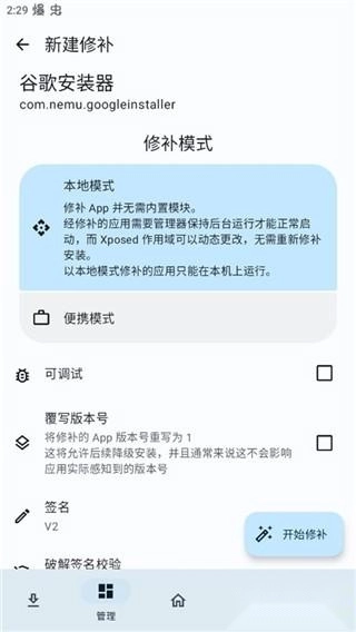 lspatch模块免root版是一款实用且功能丰富的软件,提供便捷的免root权限服务。用户无需获取root权限,就能免费使用基于root运行的xp模块框架。该版本支持两种修补模式——便携模式与本地模式,还具备调试、覆写版本号、签名校验等功能。值得一提的是,无需搭配shizuku工具,通过便携模式即可完成修补并启用xp模块,且修补后的应用在未安装lspatch管理器的设备上也能正常运行。