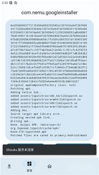 7、此时显示Shizuku服务未连接,这个时候卸载本地安装的应用。