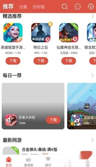 1、在本站安装虫虫助手安卓版,启动软件后,能看到首页、游戏库、排行、发现、我的这五个板块。