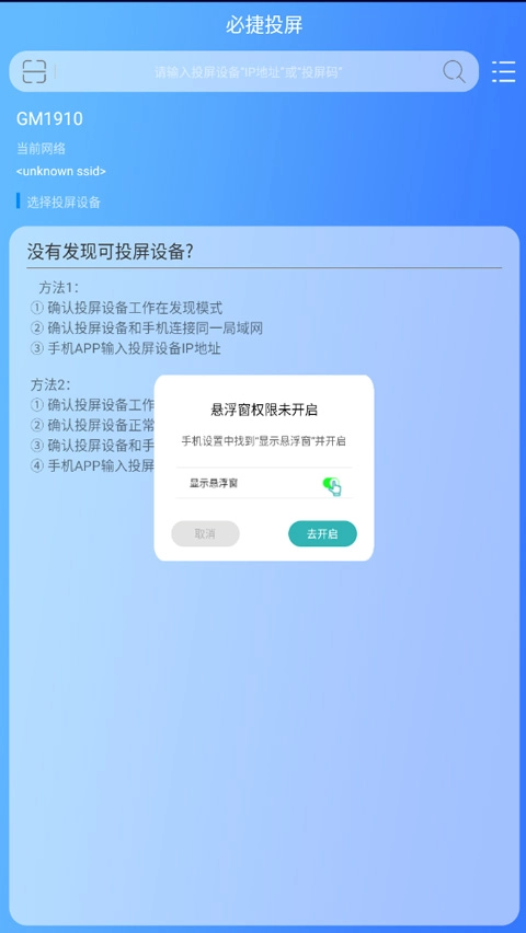 1.安装必捷投屏,开启悬浮权限。