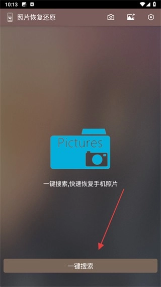 1、打开照片恢复还原应用,点击一键搜索按钮。
