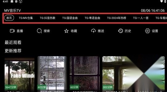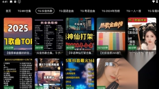 进入MV音乐TV软件的首页后,就能看到各种各样的热歌合集。