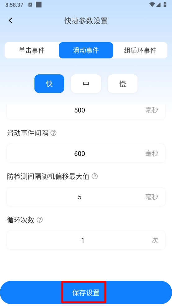 6、如图所示,依据需求挑选事件并设置其对应的参数,随后点击底部的“保存参数”按钮。
