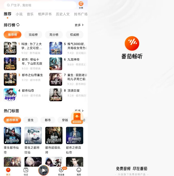 1、【抖音旗下】抖音推出的免费音频产品,番茄畅听音乐版内容超全。