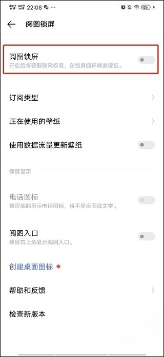 4、在右侧关闭【阅图锁屏】的开关即可。