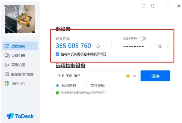在需要被控的电脑上找到设备代码和临时密码。