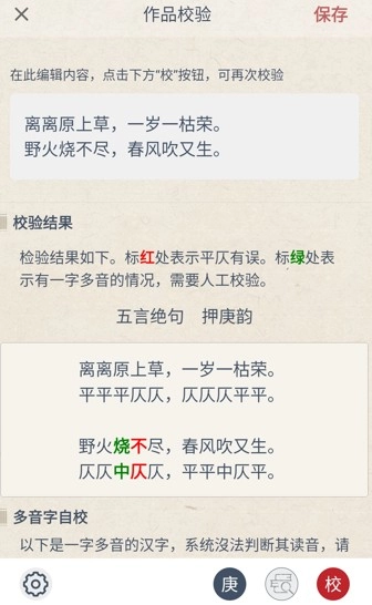 编辑作品内容,点击下方“校“按钮即可律诗校验