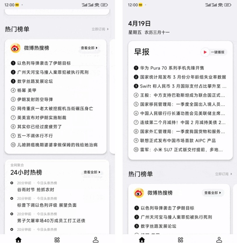 每日早报配备高逼真智能语音朗读功能,通勤途中可轻松收听新闻;同时支持截图分享,让分享新鲜事变得简单便捷。