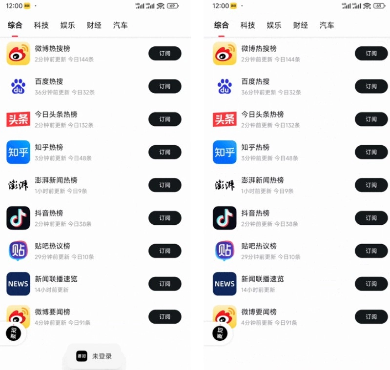 3. 需了解App首页支持左右滑动浏览各大平台的新闻订阅内容。若对科技、娱乐、财经、汽车等领域感兴趣,可在订阅市场找到相应平台,包括微博、虎嗅网、凤凰科技网、少数派等主流热门平台。