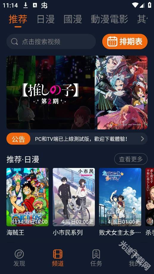 打开软件后会默认进入【频道】板块,找到你想观看的动漫并点击,即可进入视频播放界面。