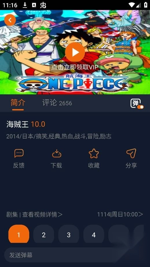 2、在动漫播放界面的上方,有一个“点击立即领取VIP”的按钮,点击它可以直接跳过广告并领取VIP。