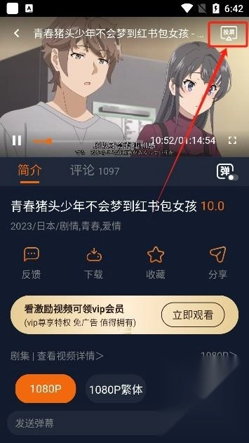 2、然后选择对应的剧集,在页面右上角找到tv投屏的图标