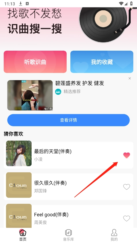 4、将喜欢的音乐进行收藏,以便下次可以直接找到。