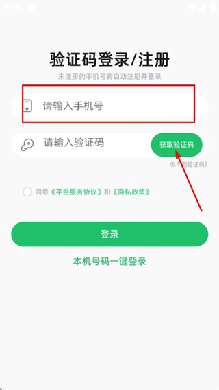 2、于登录页面输入手机号,勾选相关协议后,点击“获取验证码”按钮。