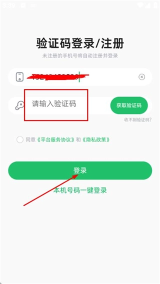 3、在验证码输入框中填写收到的验证码,点击登录按钮以完成账号登录操作。
