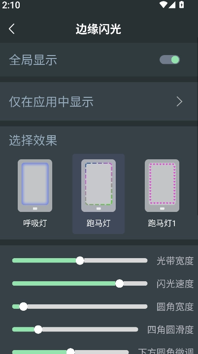 3、除基础模式外,还能开启边缘闪光效果,并且可以依据需求挑选不同灯效,以此增强屏幕的视觉表现。