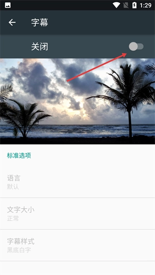 3、进入字幕设置界面后,找到并点击开关按钮,把字幕功能的状态从“关闭”调整为“开启”。